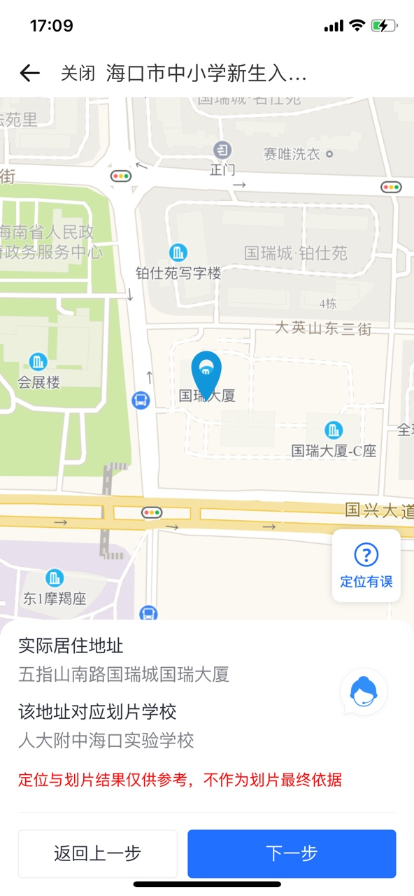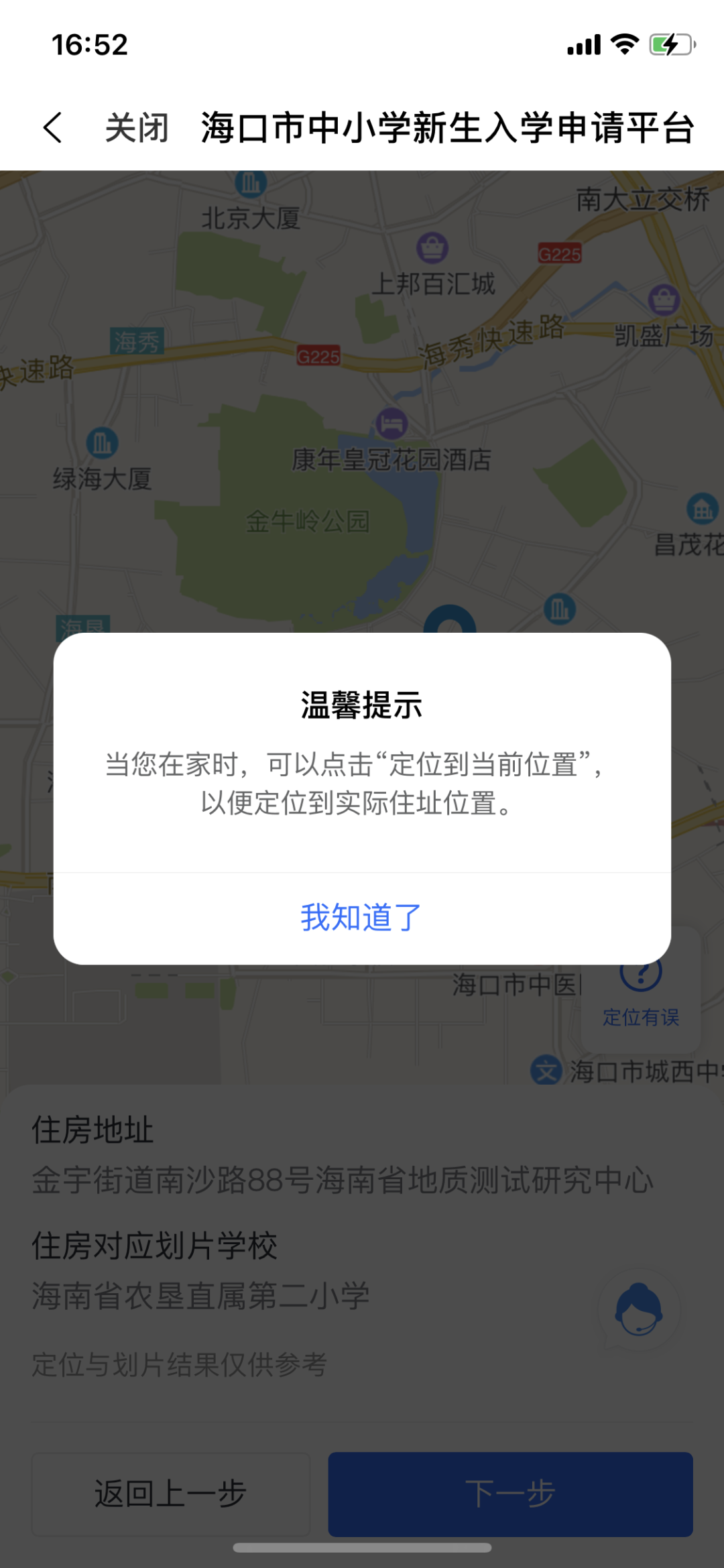 ②若用户认为定位不准确,导致划片学校不正确,可以点击“定位有误”,切换手动定位模式。