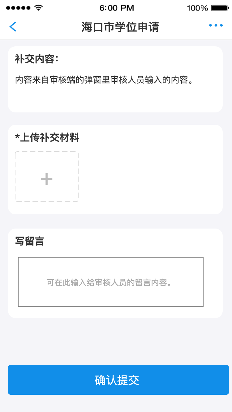 ④点击补交材料,则可查看自己申请不通过的具体项目,并拍照上传相关的材料进行提交。在最后一栏“写留言”中,可补充说明自己的情况。提交材料后,学校会重新审核。