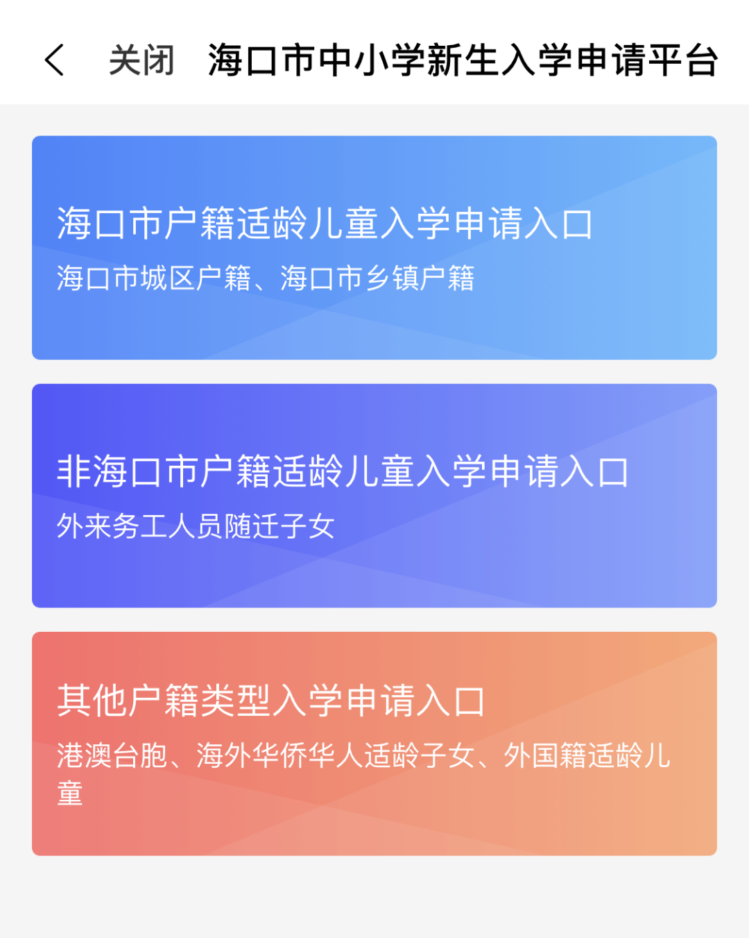 根据入学儿童的户籍类型,选择合适的申请入口。