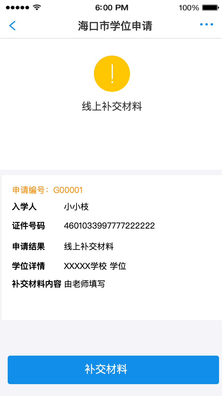 ③学校认为学生入学所需材料不全,线上提交的信息不足以证明入学资格,则会让申请状态变为补交材料。