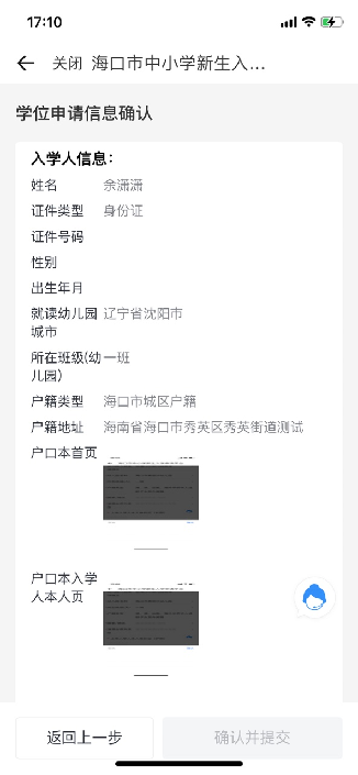 温馨提示:非海口市户籍的入学人,如持有海口市居住证,需上传入学人本人海口市居住证。