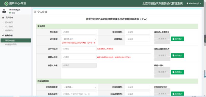 3.车主用户填写北京市鼓励汽车更新换代申请表
