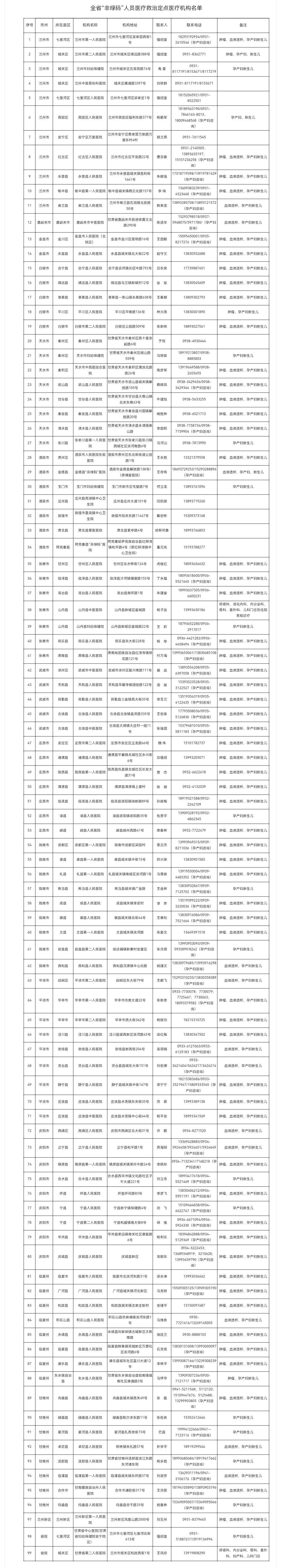 为切实做好甘肃省疫情防控期间“非绿码”人员医疗服务保障工作,坚持人民至上、生命至上,及时妥善处理群众就医需求,现将全省“非绿码”人员医疗救治定点医疗机构名单公布如下: