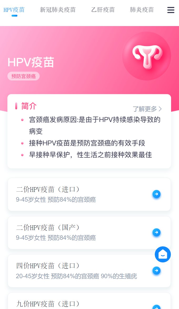 1、进入湖北省宫颈癌防治中心平台,选择HPV疫苗预约