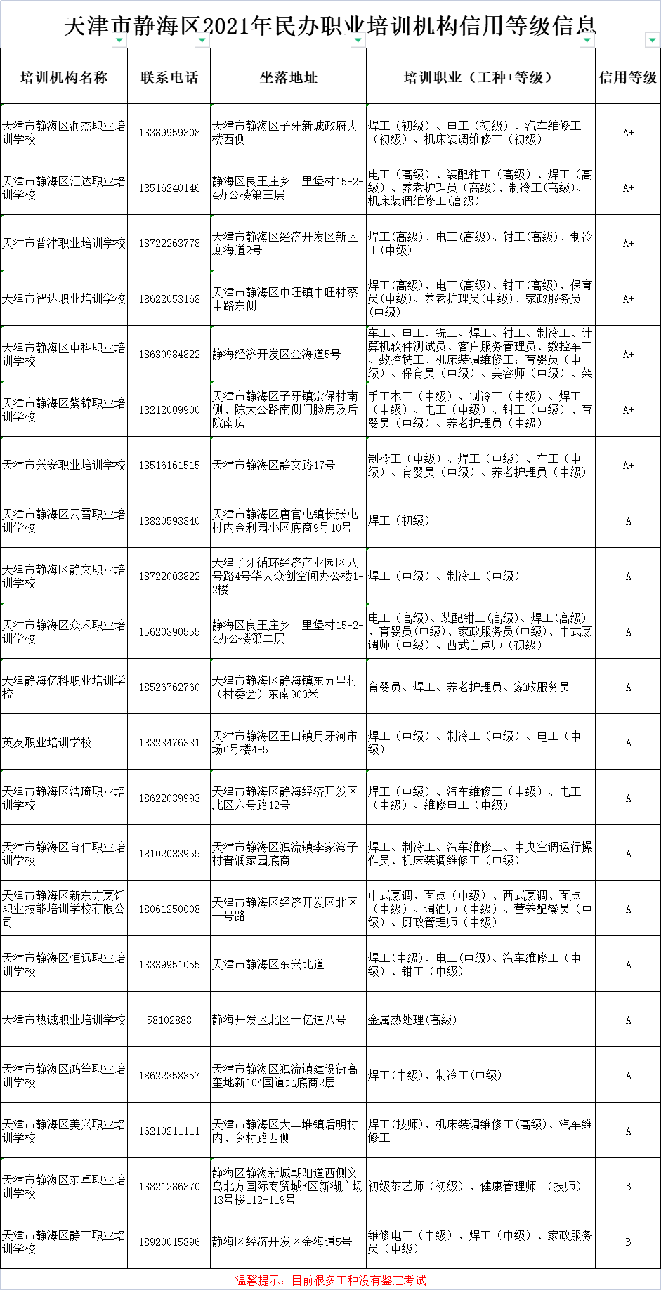 天津静海区职业技能培训机构(天津静海区职业技能培训机构名单)