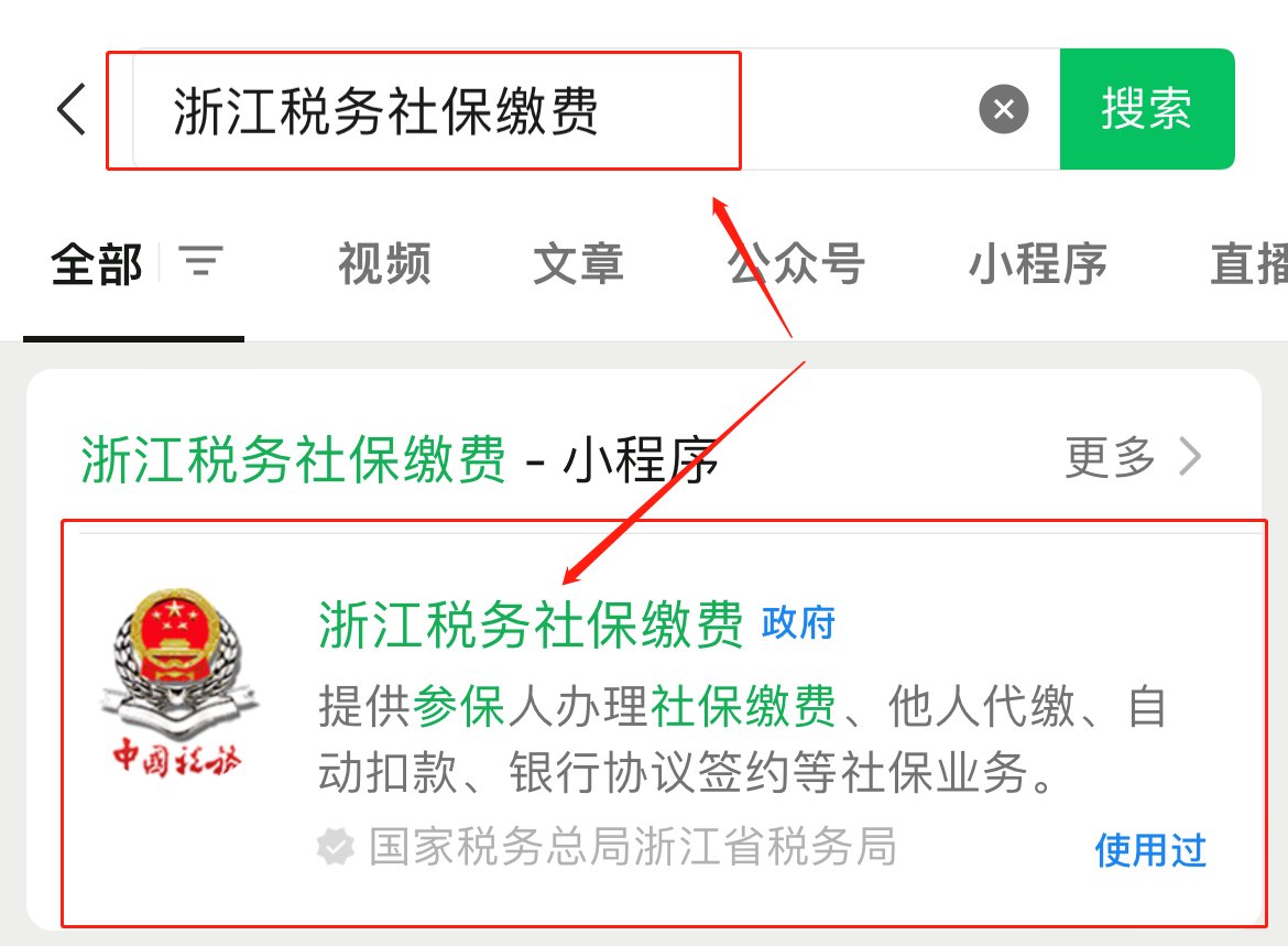 3.通过微信搜索“浙江税务社保缴费”小程序,进行自助缴费。