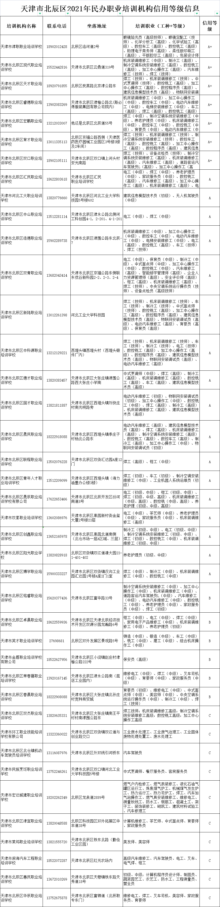 天津北辰区职业技能培训机构名单 天津北辰区职业技能培训机构名单查询