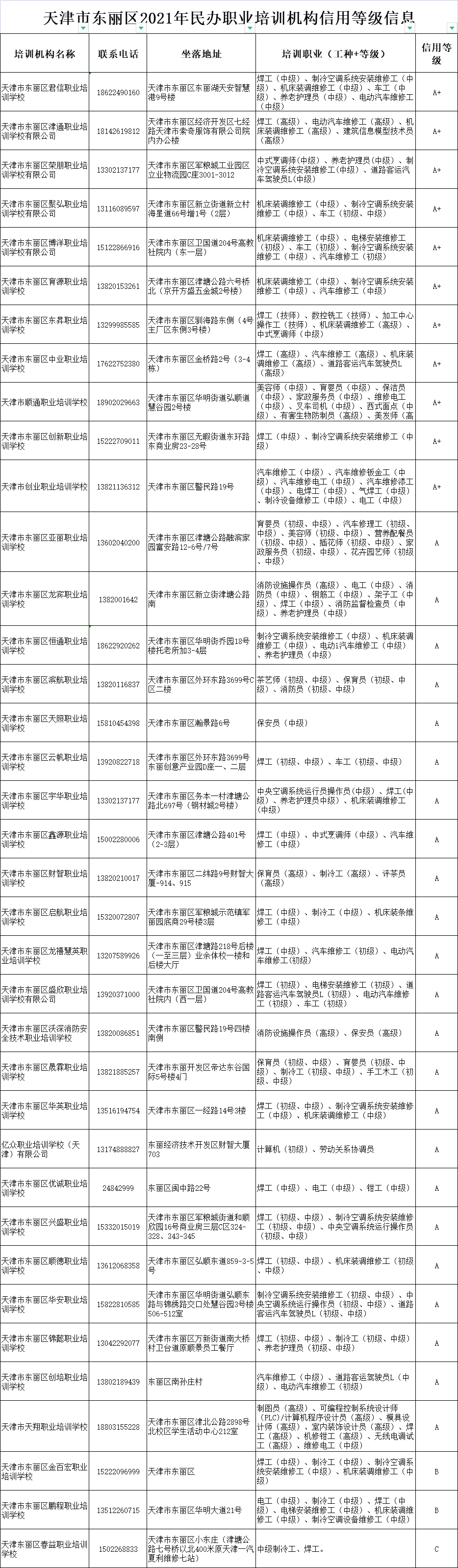 天津东丽区职业技能培训机构名单(天津市东丽区天照职业培训学校有限公司)
