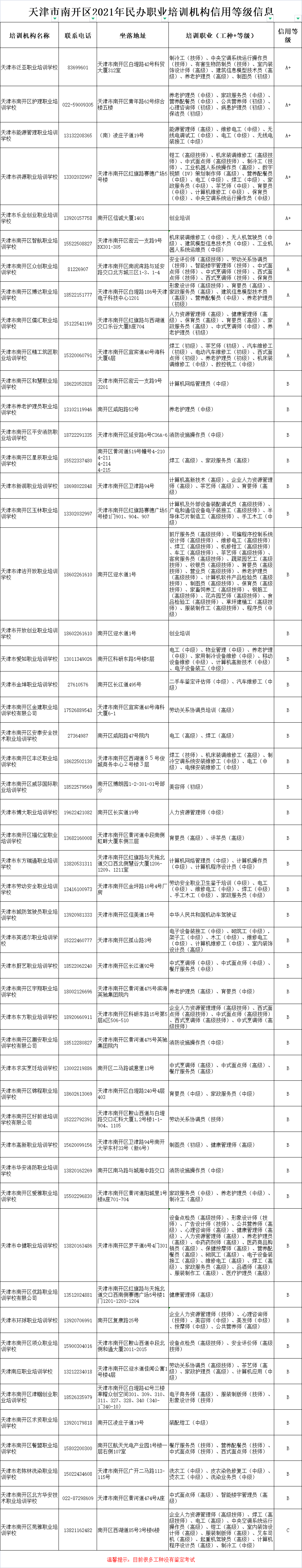 天津南开区职业技能培训机构名单(天津南开区职业技能培训机构名单公示)