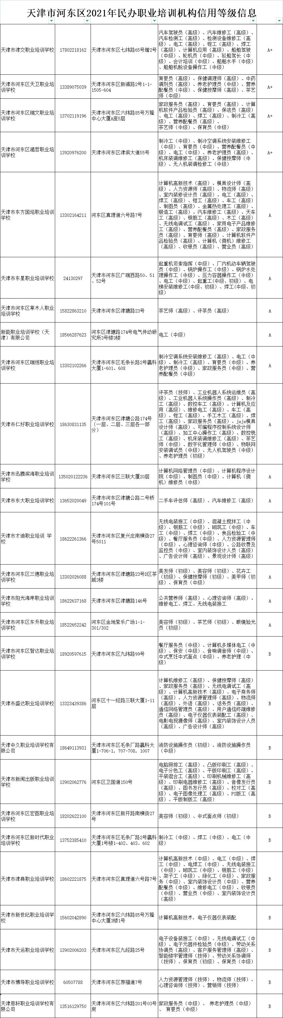 天津河东区职业技能培训机构名单(天津市河东区培训学校)
