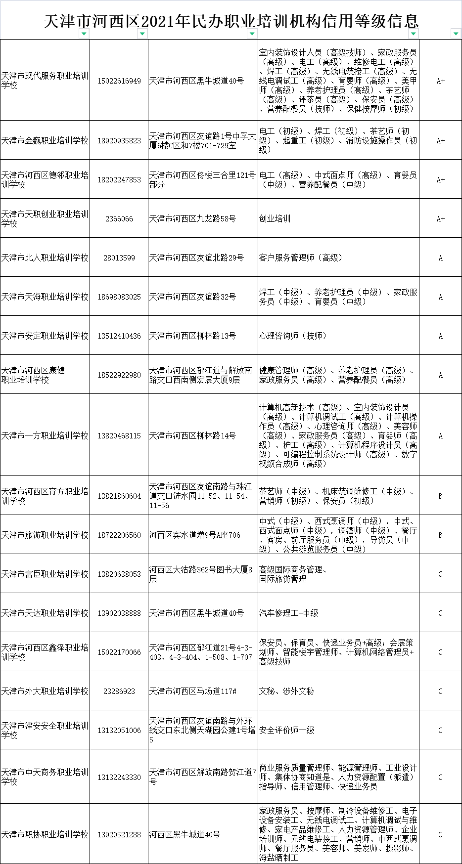天津河西区职业技能培训机构名单 天津市河西区培训机构