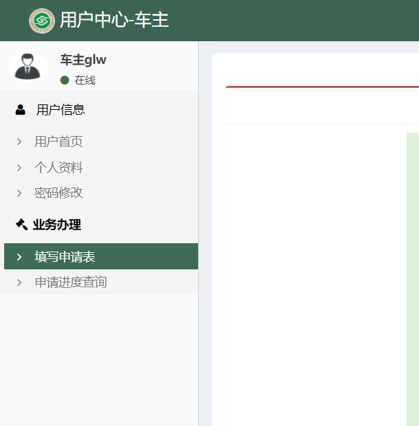 车主用户登录系统后点击左侧菜单【填写申请表】: