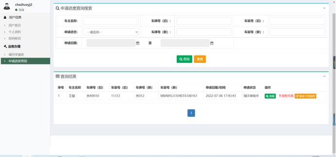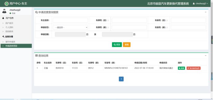 4.车主提交申请后,可在【申请进度查询】中查到申请状态。