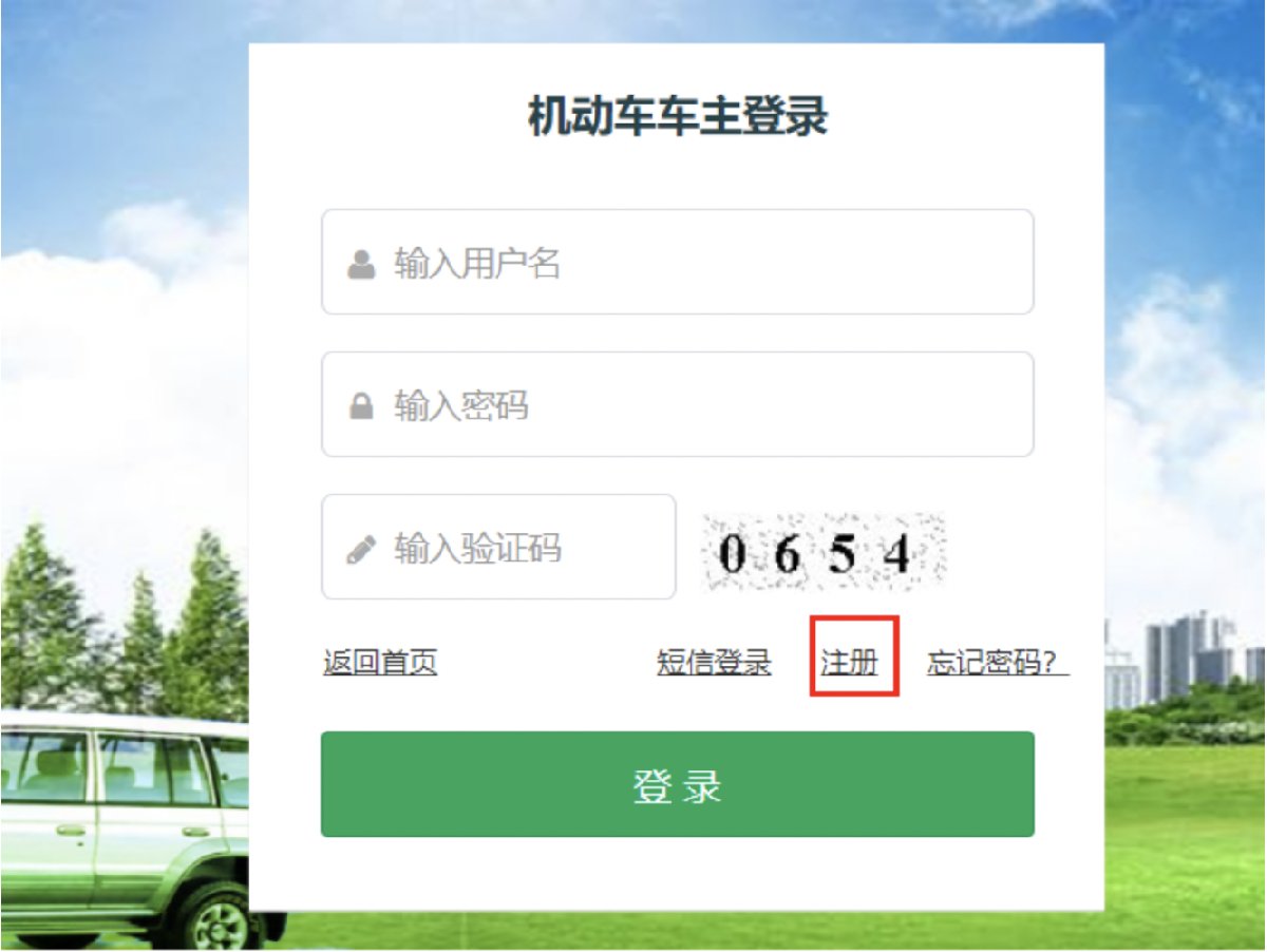 车主用户注册成功后,跳转登录界面或用户点首页【车主用户登录】按钮进入系统登录页面: