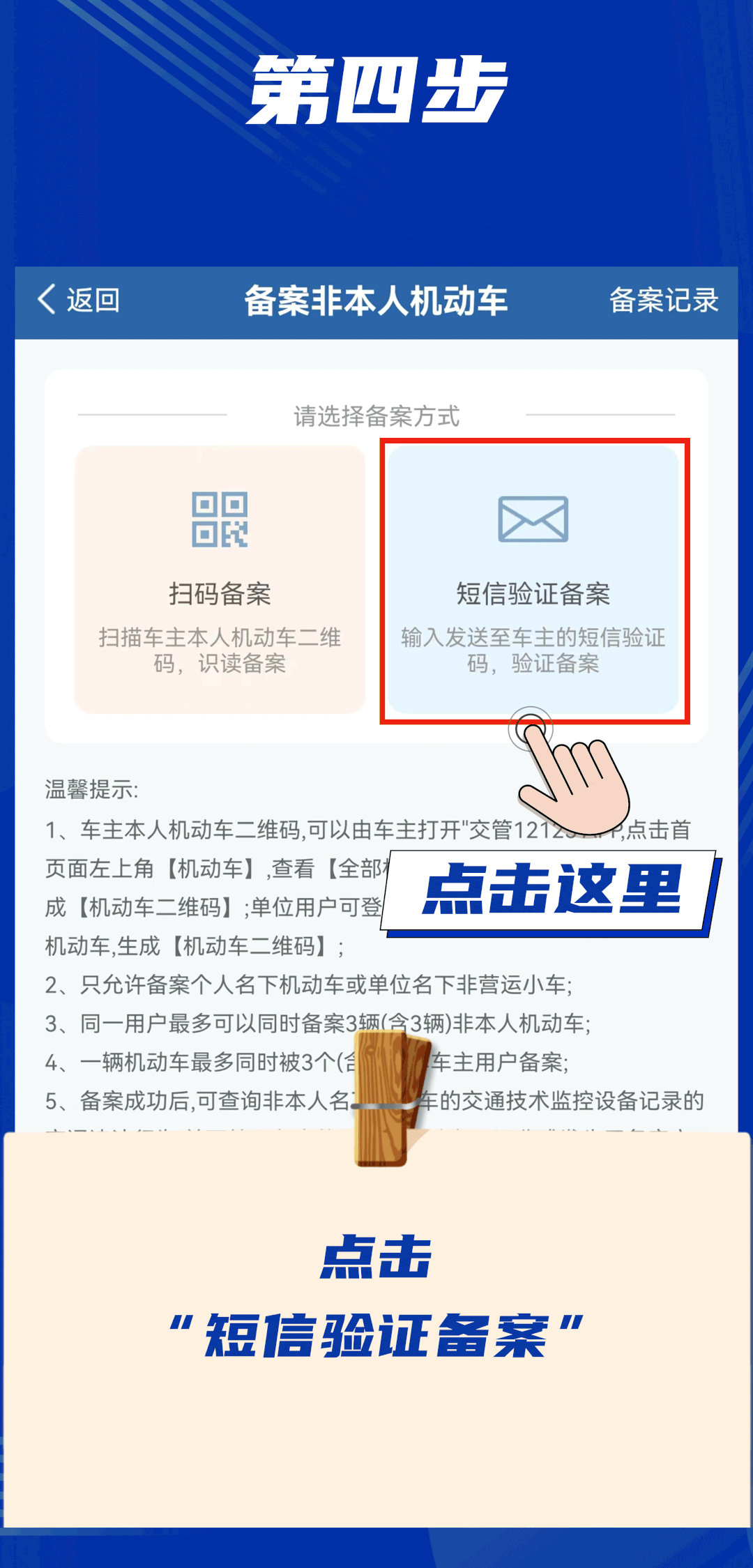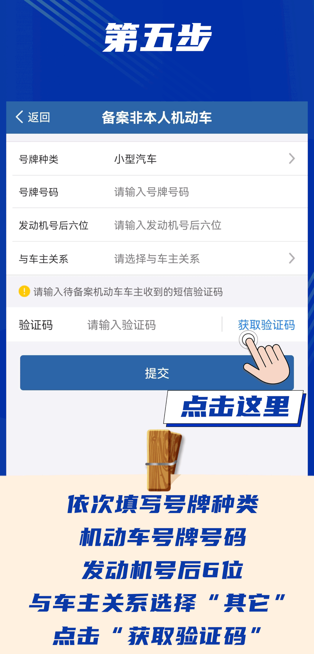 填写收到的验证码后,点击提交,系统审核完毕后,即可完成机动车备案流程。
