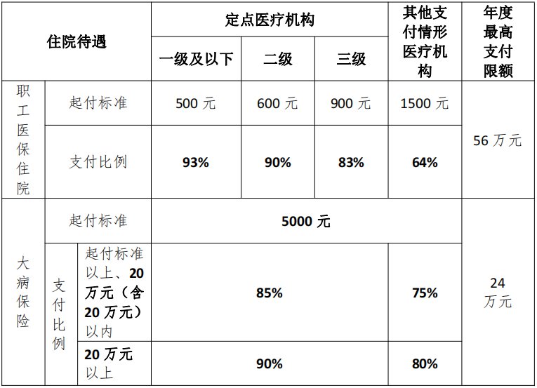 保持住院支付比例基本不变。从2021年7月1日起,职工医保年度累计最高支付限额提高至80万元(含大病保险24万元)。