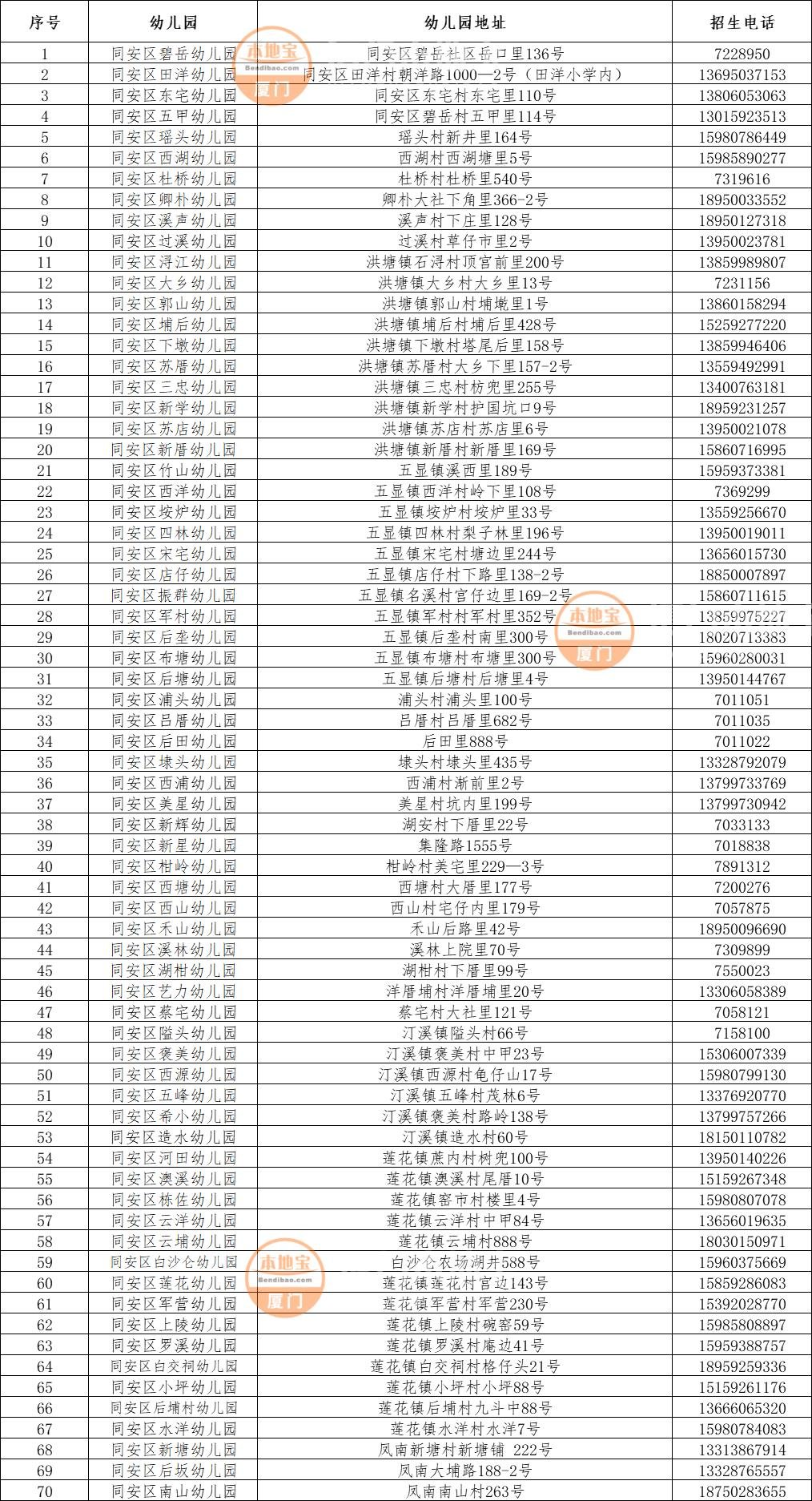 2022年秋季同安区集体办幼儿园招生咨询电话 (仅适用于2022年秋季招生)