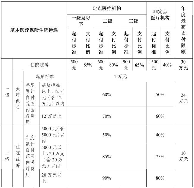 职工退休人员在上述一档起付标准的基础上降低100 元,一档住院基金支付比例基础上提高5个百分点。