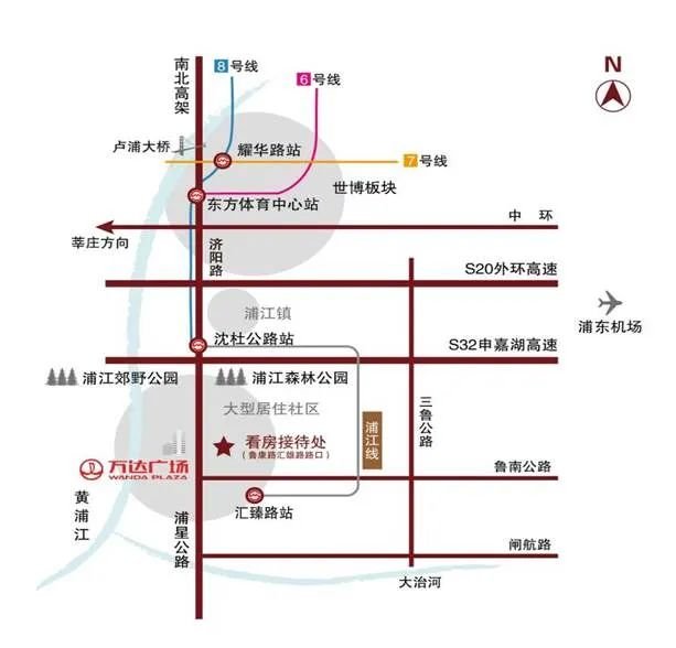 看房居民可乘坐轨道交通8号线至沈杜公路站后,站内换乘8号线延申线(浦江线)至汇臻路站下车。步行10-15分钟抵达看房接待处。