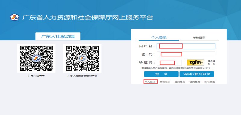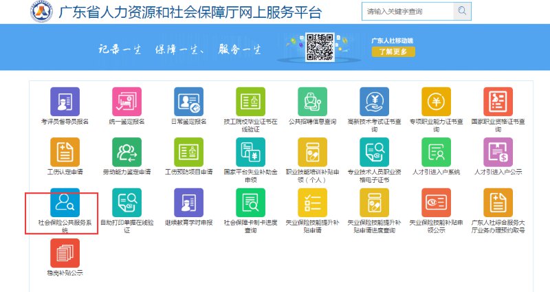 1.登录:广东省人力资源和社会保障厅网上服务平台(http://ggfw.gdhrss.gov.cn/gdggfw/index.shtml)-->社会保险公共服务系统,如下图: