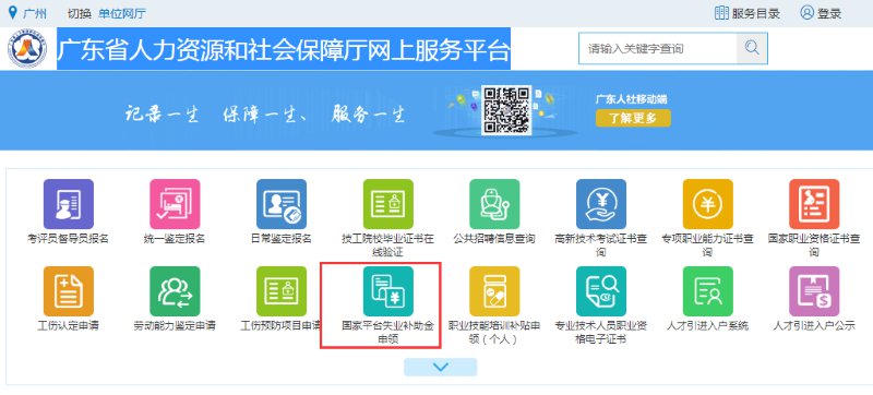 国家失业补助金申领平台:https://ggfw.gdhrss.gov.cn/gdggfw/index.shtml