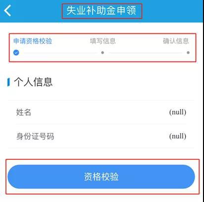第六步:进入【申请资格校验】页面,按要求进行【资格校验】→【填写信息】→【确认信息】,完成申领。
