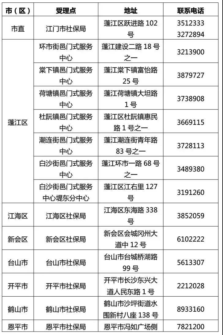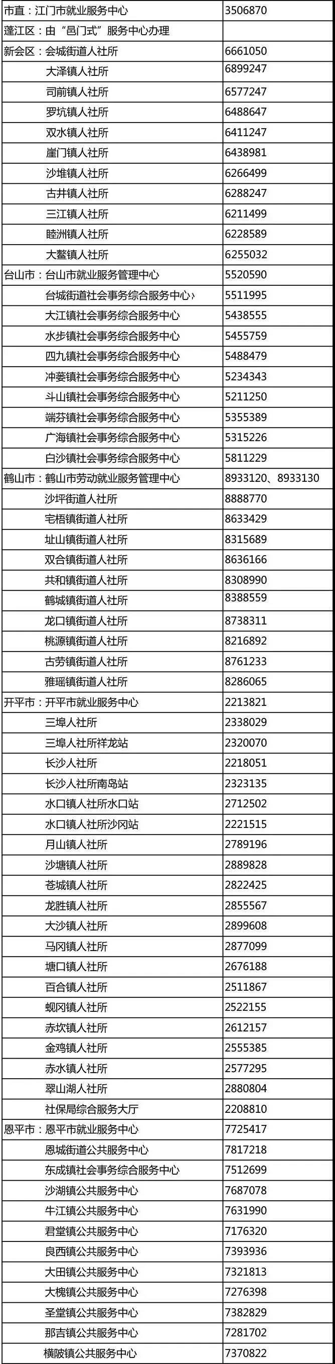 (一)各市、区社保局及“邑门式”服务中心地址电话