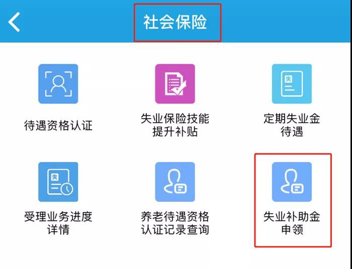 第三步:进入【社会保险】页面,点击【失业补助金申领】。