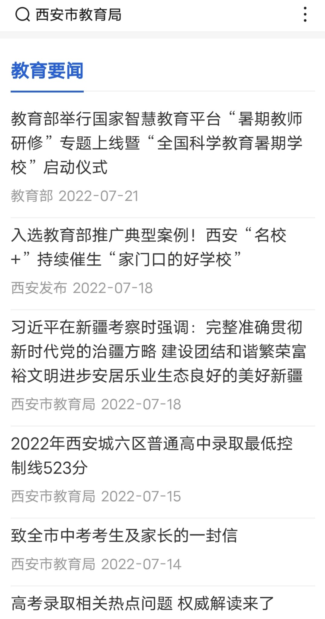 ●7月30日12:00,西安市教育局官网将公布第一批次录取结果。