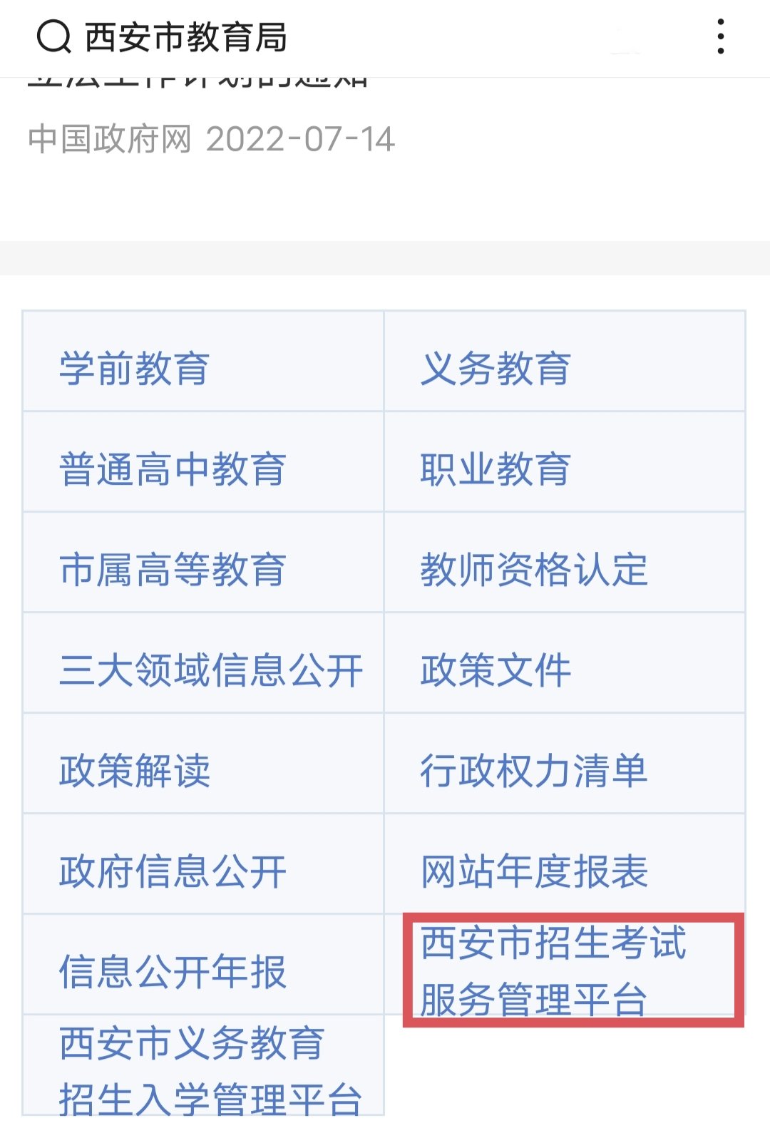 查询平台:【西安市教育局】—【西安市招生考试服务管理平台】