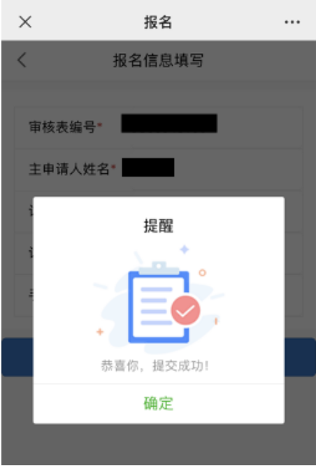 输入报名信息,点击【报名提交】。则提示“提交成功”。如下图: