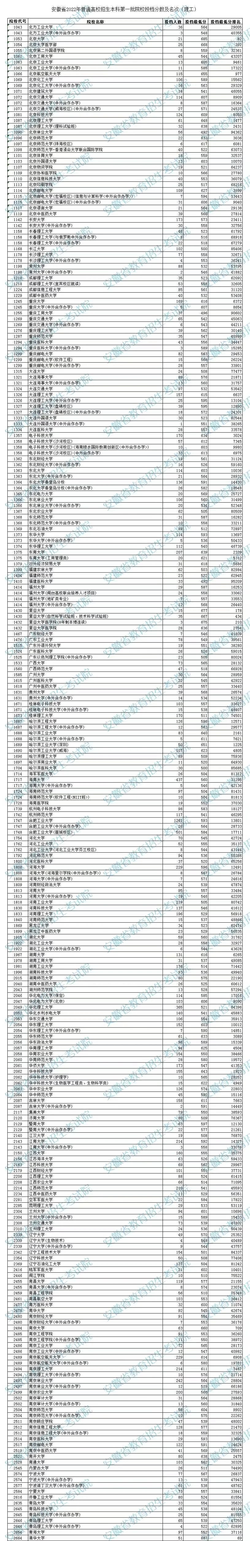 安徽省2022年普通高校招生本科第一批院校投档分数及名次(理工)