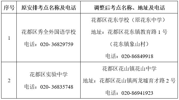 关于调整广州市2022年10月自学考试花都区个别考点的通告