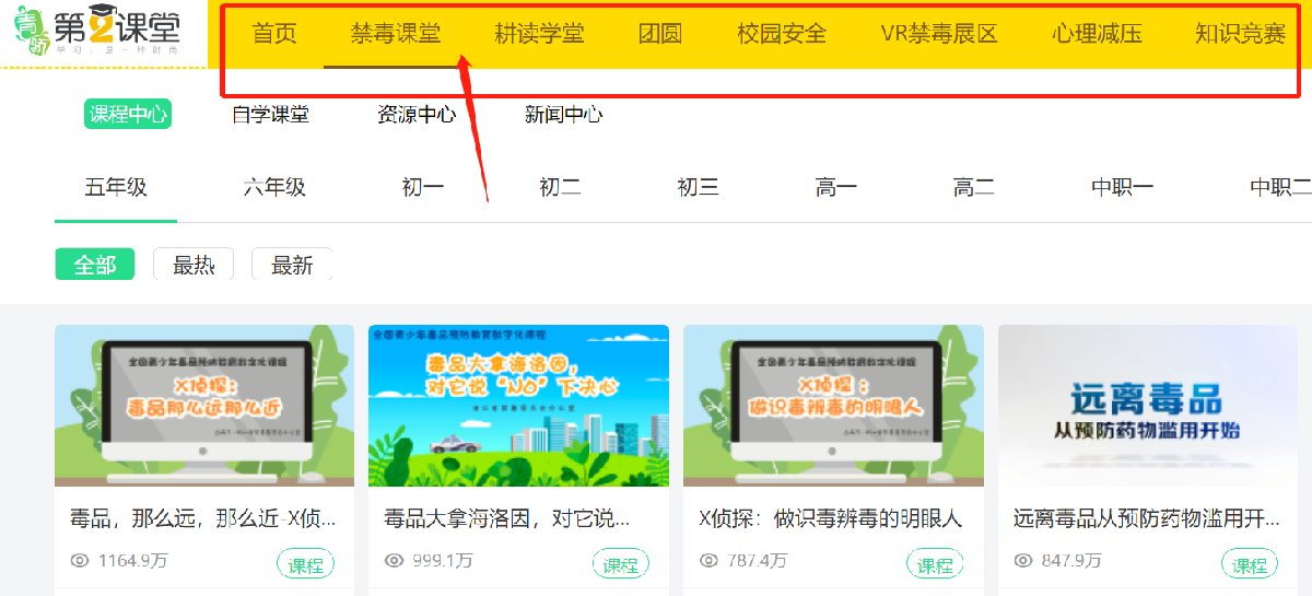学习方法:点击【禁毒课堂】,选择【课程中心】或者【自学课堂】看视频进行学习,也可以通过题库进行学习。