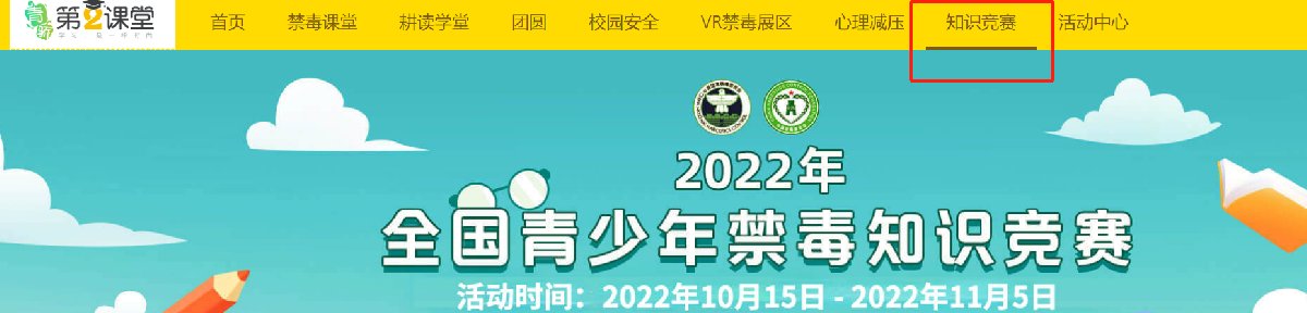 进入“青骄第二课堂”官网。点击导航栏【知识竞赛】,登录账号,即可以开始答题。