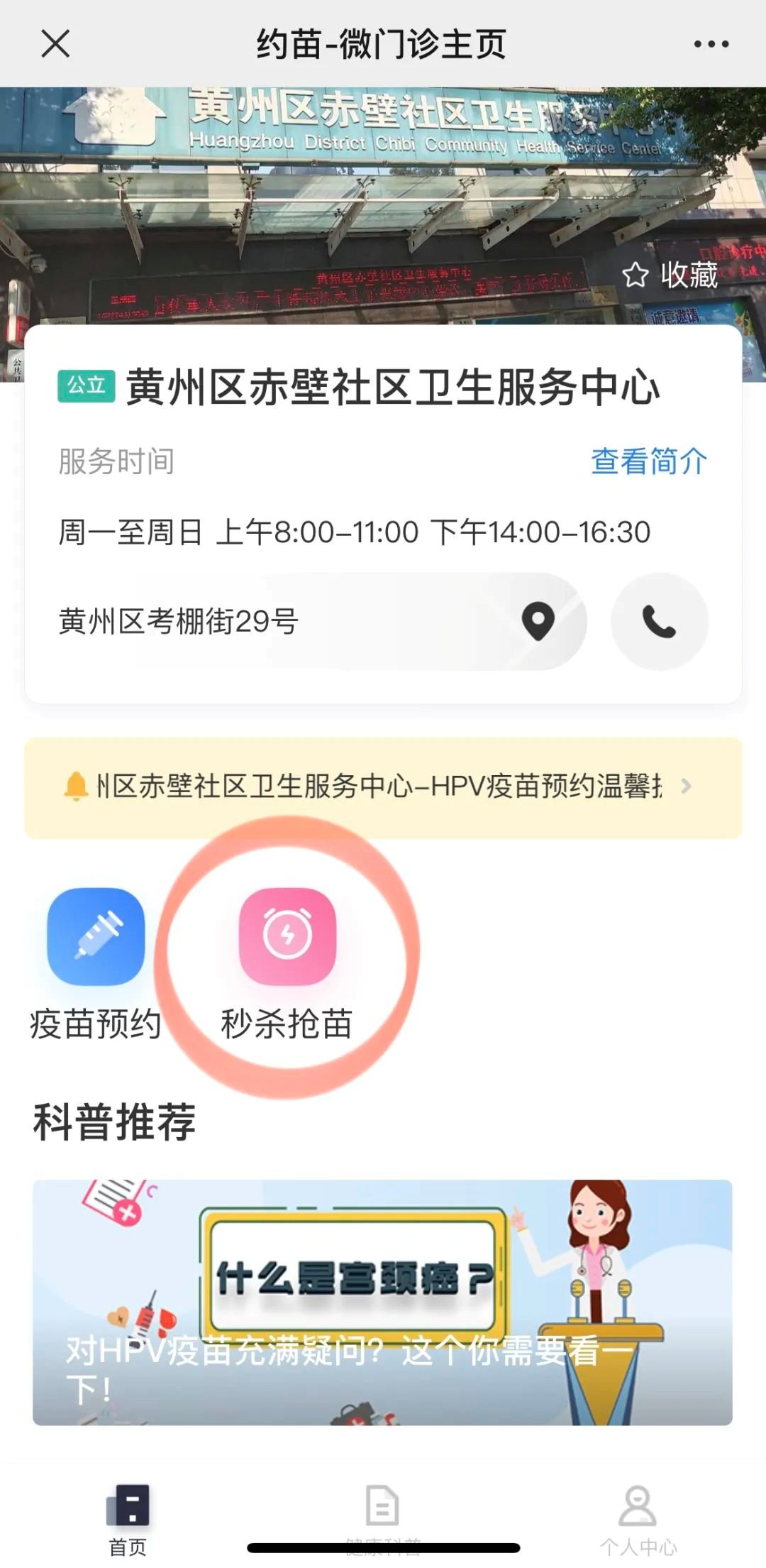 黄州区赤壁社区卫生服务中心四价及九价HPV宫颈癌疫苗预约方法