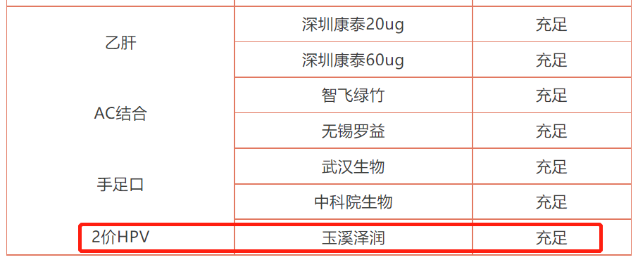注:疫苗均以实际库存为准,可能存在临时变动情况。2价HPV接种年龄为9-30岁,不可以和其他厂家混打