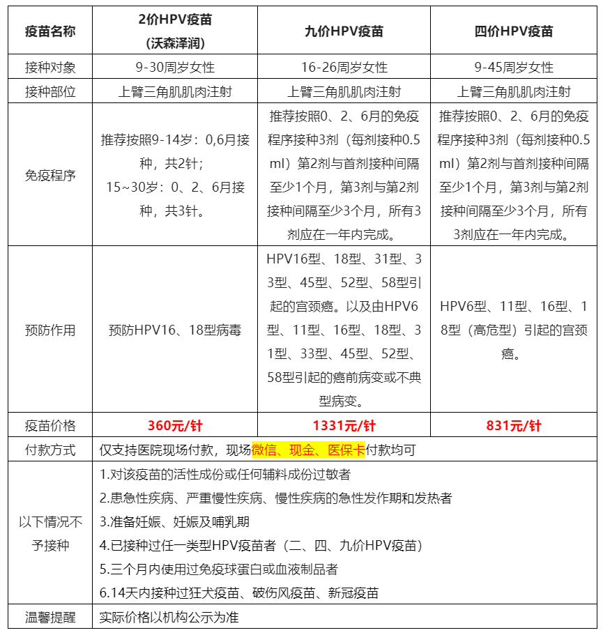 疫苗种类:2价HPV疫苗+4价HPV疫苗+9价HPV疫苗