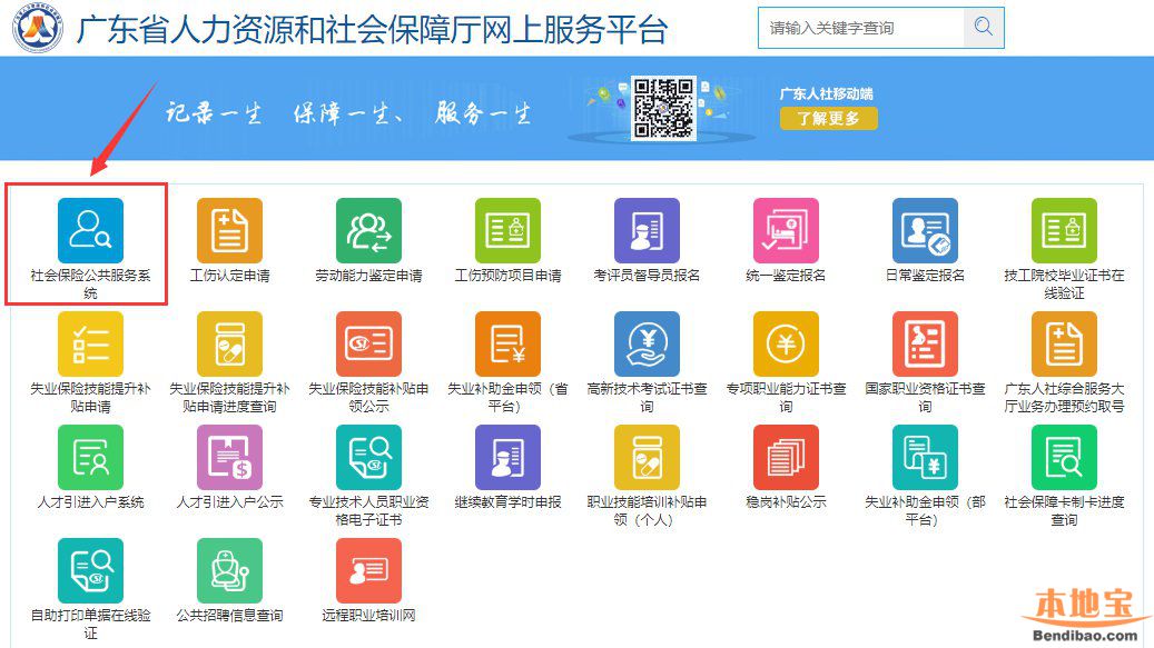 第一步:登录广东省人力资源和社会保障厅网上服务平台,并点击进入“社会保险公共服务系统”。