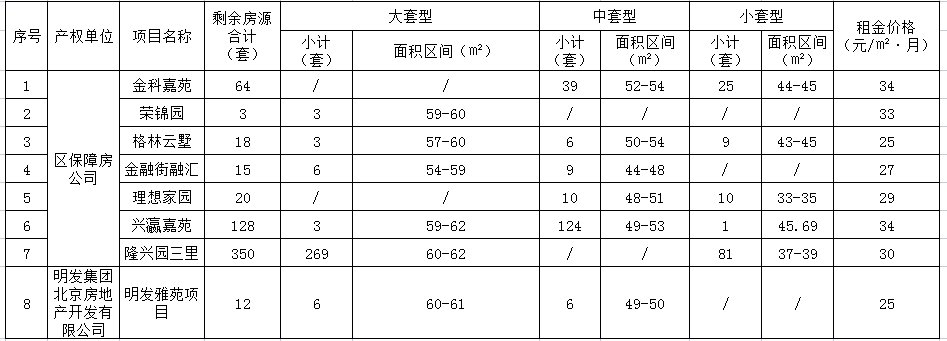 根据《北京市公共租赁住房申请、审核及配租管理办法》(京建法﹝2011﹞25号)、《关于加强公共租赁住房资格复核及分配管理的通知》(京建法〔2021〕8号)、《北京市2022年住房保障工作要点》等相关文件规定,现将我区8个公租房项目房源,采取网上登记的方式,面向大兴区保障性住房轮候家庭进行快速配租。现就有关事宜公告如下: