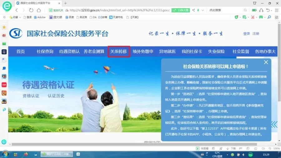 江门养老保险转移网上办理指南
