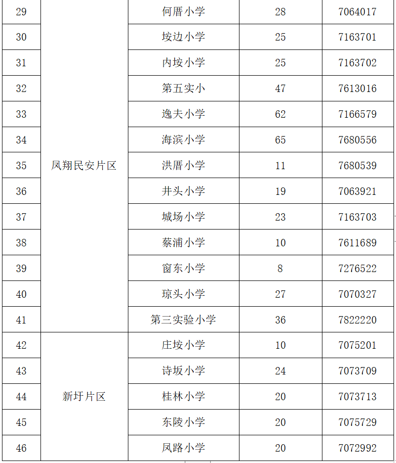 3、填报方式:网络填报。登录“i厦门服务平台”或微信公众号“i厦门”,家长填报志愿时须按照积分入学片区,即大嶝新店片区,马巷内厝片区、香山金海片区、凤翔民安片区、新圩片区,同一片区必须填满10所,未满10所的必须填满所有学校。逾期未填报的视为自动放弃在翔安区就学机会,