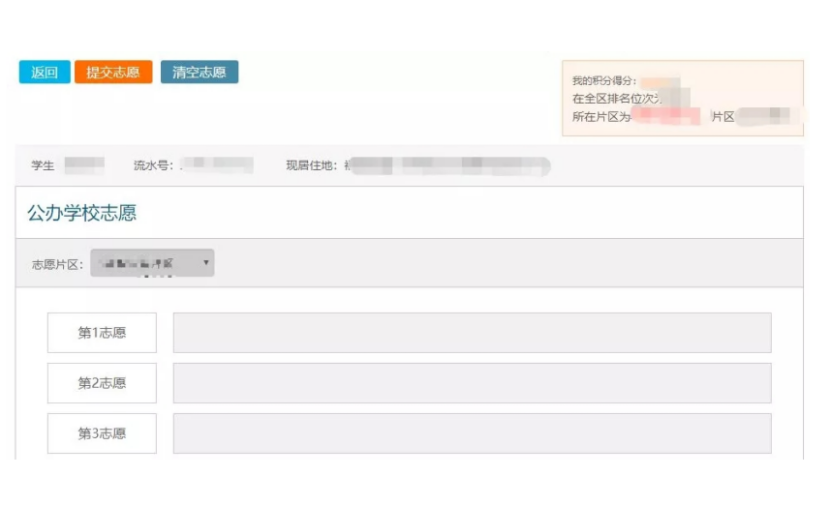 第3步:在志愿填报界面,按照您的志愿顺序,填入公办学校志愿。点击每个志愿右边的方格,在系统弹出的窗口内选择您的志愿学校。