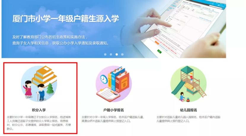 第1步:在“i厦门”官网登录您的积分入学报名账号,首页点击【基础教育报名】,跳转后点击【积分入学】,进入查看积分确认单。