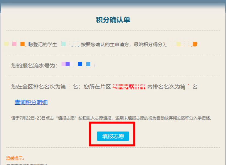 2、志愿填报只有2天时间,特别注意志愿填报截止时间为7月23日24:00,逾期未填报志愿的视为自动放弃参加翔安区积分入学电脑派位资格。