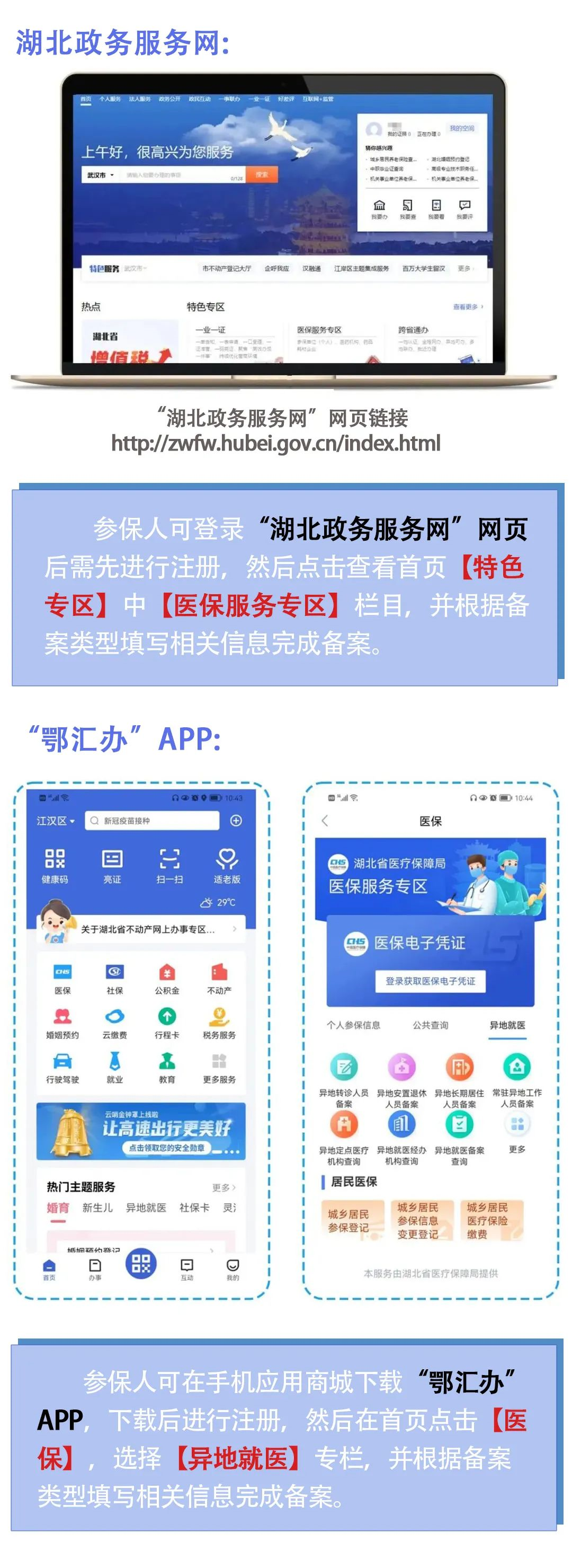 参保人可通过网页登录“湖北政务服务网”或手机登录“鄂汇办”APP申请办理。