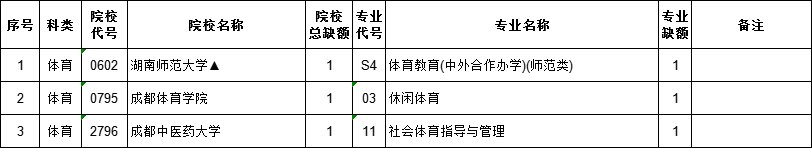 ➤江西省2022年普通高校招生第一批本科体育类缺额院校及专业统计表: