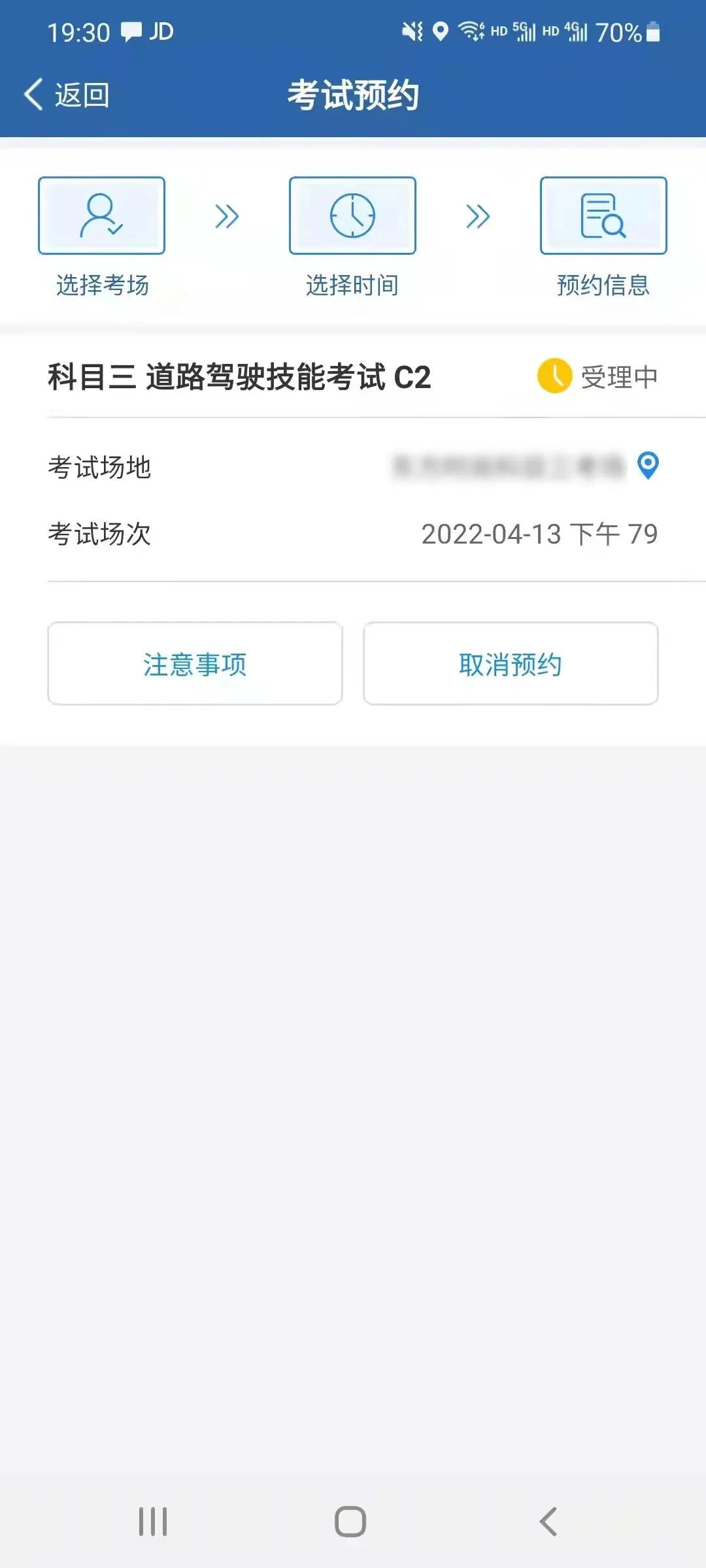 注意事项1:科目一合格后可预约科目二或科目三考试