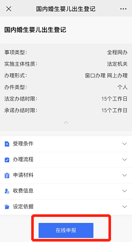 关注微信公众号“警快办”(或点此进入扫码关注),并实名注册认证。在“警快办”办事中心—户政专区—出生登记办理界面内,选择相应的新生儿身份,点击后进行申请。