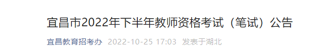 10月25日:宜昌市2022年下半年教师资格考试(笔试)公告